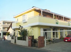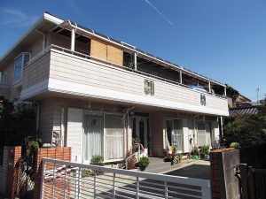 外壁塗装の施工事例です。外壁をこすり、手に塗料がチョークのようについたら、家が傷まないように塗り替えをおすすめします。