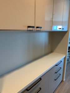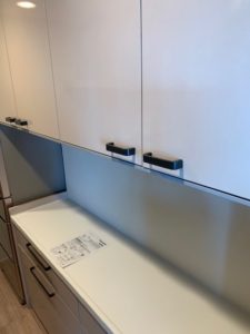 キッチン/新築マンションのカップボード取付工事 I様邸 新築マンションは購入時、カップボードが取り付けられていないことが多く キッチン背面のカップボードを取付しました。 奥さまの身長が低いので、吊り戸は少し低めに取付しました。 パナソニックキッチン