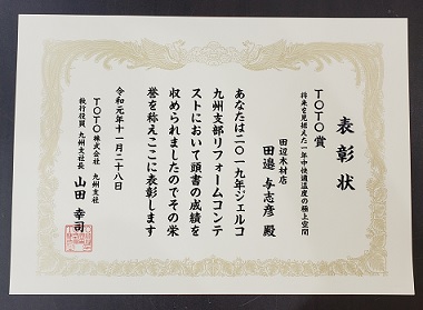 日本住宅リフォーム産業協会主催 九州主催 デザインコンテストにて TOTO賞を受賞いたしました。